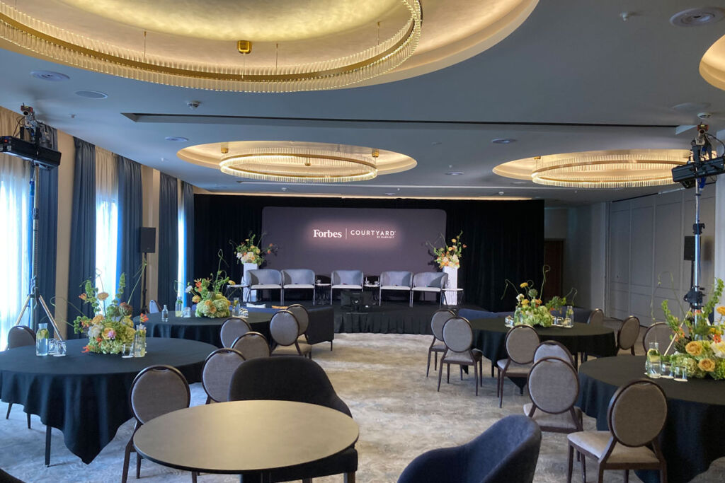 Since 2011, Forbes has published its 30 Under 30 list annually within the Forbes magazine, the list recognises 30 notable people in various industries who are under the age of 30 years old. When the prestigious Forbes 30 Under 30 panel came to the Courtyard by Marriott London Heathrow, Conference Craft was commissioned to provide expert technical support. This high-profile event brought together influential young entrepreneurs to share their insights, requiring a flawless technical event management strategy to satisfy both the live audience and the media recording crew.